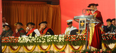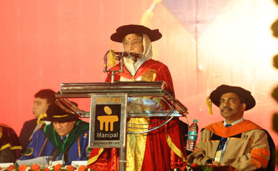 “I am very happy to be here at the 10th Convocation of Manipal University, an institution which is a product of the vision and commitment to education of Dr. T. Madhav Anant Pai. It started as the Academy of General Education in 1942, and after imparting education for over five decades, it became a deemed University in 1993. Today, Manipal is one of the leading academic and education institutions in the country. I wish the University of Manipal a bright and prosperous future.