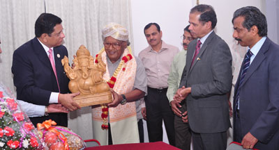 In the enclosed photo is seen Shri R K Dubey, Chairman & Managing Director of Canara Bank, felicitating Prof. CNR Rao; flanked by Shri V K Krishna Kumar, Executive Director, Canara Bank and Shri Ravindra Bhandary, General Manager of Bank’s Bangalore Metro Circle.