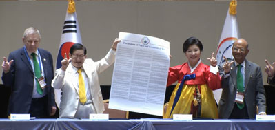 Chairman Lee presented the articles of the Declaration of Peace and Cessation of War. The core elements include prohibition of: the threat or use of force; obtaining war potential; and dispute settlement; freedom of religion; spreading a culture of peace.