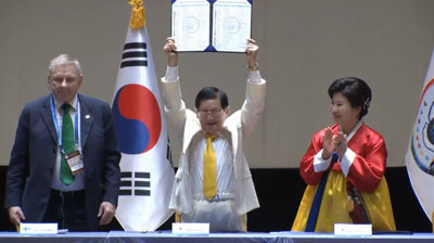 Chairman Man Hee Lee of HWPL said, “In order to accomplish the collective wishes of all humanity, we have gathered here today. This very moment at this very place will never be forgotten in the history of mankind because the Declaration of Peace and Cessation of War will be publicly proclaimed. All citizens of this globe will have to gather their hearts to acknowledge and urge this Declaration to embrace the new