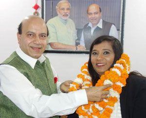 NEW DELHI, Nov 18: British citizen born in Navsari, Gujarat, Bharulata Kamble, was honored by Senior BJP Leader Vijay Jolly here. Her name is now registered in World Guinness Record. A practicing London lawyer is married to Robotic Surgeon Dr. Subodh Kamble with two sons.