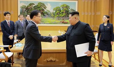 Before leaving for Pyongyang, Chung said he would relay Moon’s hopes for North Korean nuclear disarmament and a permanent peace on the peninsula.