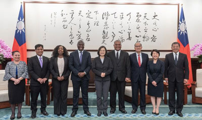 Tsai made the remarks while receiving a delegation of the permanent and deputy permanent representatives to the U.N. of four of Taiwan’s diplomatic allies at the Office of the President in Taipei City.