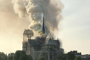 PARIS, April 16: Notre Dame Cathedral went up in flames on Monday in a roaring blaze that devastated the Parisian landmark, one of France’s most visited places. Flames burst through the roof of the centuries-old cathedral and quickly engulfed the spire, which collapsed.