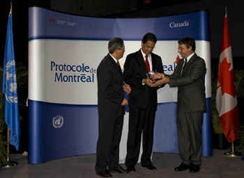Dr Vishwapati Trivedi, Joint Managing Director, National Aviation Company of India Limited, received the award in Montreal in the presence of Nobel Prize winners who postulated the depletion of the ozone layer and other high level dignitaries.