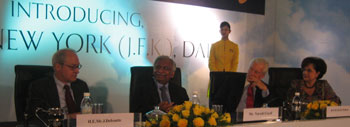 At the launch ceremony for the flight to JFK, US Ambassador David Mulford stressed on the need for people to people contacts. He said the US embassy has brought down the waiting period for visas from 14 months to 12 days and some cities to three to four days.