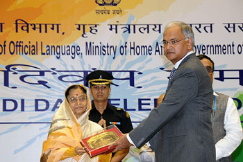 The President, Mrs Pratibha Patil, presented the First Prize to Mr Arvind Jadhav, Chairman and Managing Director, Air India, at a function in Vigyan Bhawan, Delhi on Tuesday.