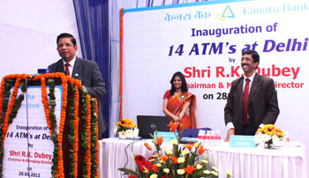 NEW DELHI, April 28: Canara Bank Chairman and Managing Director Mr R K Dubey on Sunday inaugurated 14 ATMs in Delhi at a simple function at the Kamla Nagar branch. With these ATMs, the total number of ATMs in Delhi city is 255 and of the bank it increased to 3,544.