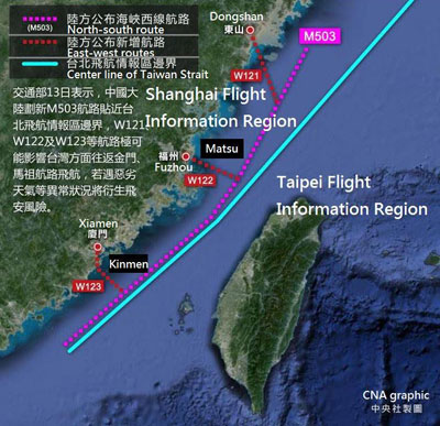 Taiwan will communicate fully with the international community. The one-sided launch of controversial flight routes without prior negotiation by the Beijing authorities endangers aviation safety and upsets the status quo across the Taiwan Strait.