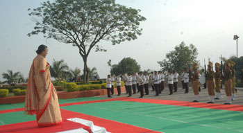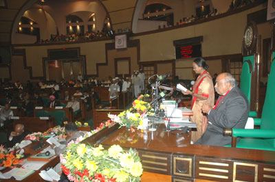 Earlier in the day, Mrs Meira Kumar was given a Guard of Honour on her arrival at the ceremonial gate of the Vidhan Sabha Bhawan.