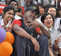 The 15-over match was played between Doon School and Abhimanyu Cricket Academy. Brian Lara batted for Doon School team and made quick fire 69.