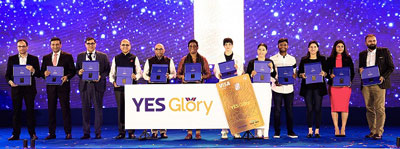 Benefits of Yes Glory include complimentary welcome on-board Taj voucher; Complimentary Orthopedic consultations; Zero cross-currency mark-up on International spends; Complimentary Medical insurance; Yes Glory Gold Debit Card (Limited edition exclusive Debit card, specially designed for our champion athletes); and complimentary International lounge access.