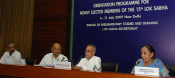 Among others who will address members at the Orientation Programme are Union Finance Minister Pranab Mukherjee, Former Union Ministers -- Shivraj V. Patil and Oscar Fernandes; Honorary Advisor, BPST, Margaret Alva; and the Secretary-General, Lok Sabha, Shri P.D.T. Achary.