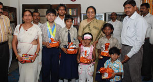 NEW DELHI, Aug 5: Lok Sabha Speaker Meira Kumar on Wednesday celebrated Raksha Bandhan, a festival that marks the bond of love between siblings, with a group of mentally challenged, and hearing and speech impaired children here.