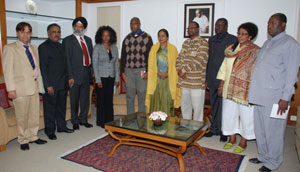 NEW DELHI, Dec 15: A six-member delegation from the Parliament of Namibia led by Hafeni Ndemule M.P., Chairperson of the Committee on Constitutional and Legal Affairs of the Namibian Parliament, called on Lok Sabha Speaker Meira Kumar in Parliament House on Tuesday.