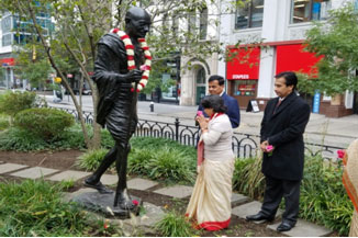 Consul General Ambassador Riva Ganguly Das led the programme by offering floral tributes to the statue of Mahatma Gandhi.