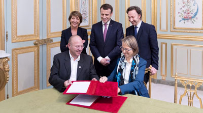 Signatories at the event on February 13 also included Stéphane Bern (popular history & heritage Radio and TV show host) and Stéphane Pallez, CEO of “Française des Jeux,” France’s national lottery authority.