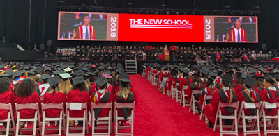 New School President David E. Van Zandt presided over the ceremony — the second consecutive year the university held its commencement exercises at the legendary tennis venue.
