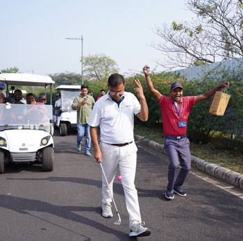 Anup Singh, who has been training and coaching at the 9-hole golf course of Karma Lakelands, is a popular team member. Many team members and senior directors Karma Lakelands cheered and accompanied Anup Singh as he walked the grounds.