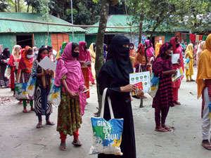 Working alongside government, staff from the Bangladesh Red Crescent Society (BDRCS), the International Federation of Red Cross and Red Crescent Societies (IFRC), and Non-Governmental Organizations (NGOs), the three UN agencies and implementing partners began giving communities at risk in the Bogura, Gaibandha, Kurigram, Jamalpur and Sirajgonj districts the means to protect themselves and their livelihoods from the worst effects of the floods.